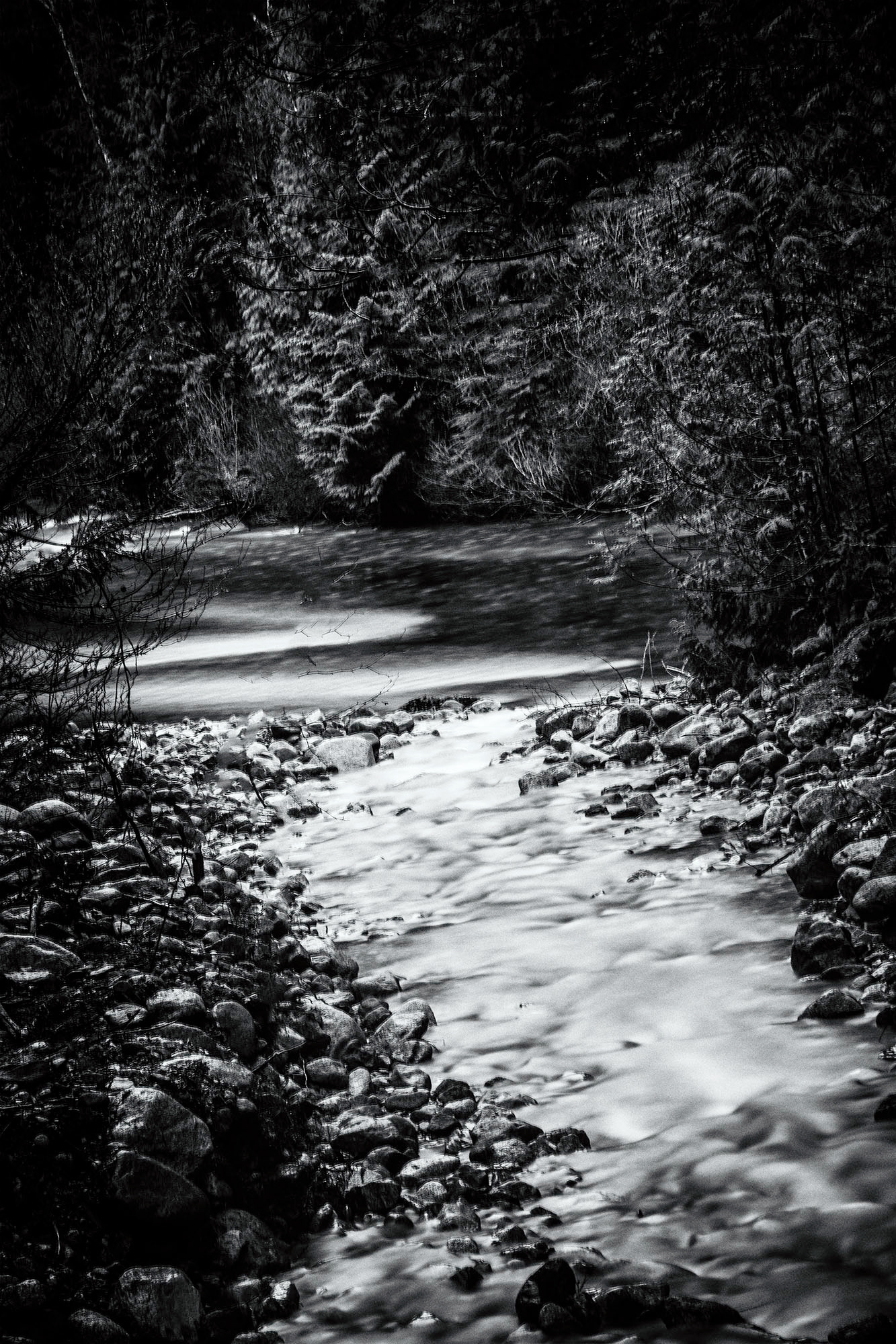 A closer look of the details of the forest and and mountain streams of the Lower Falls Trail, Golden Ears Provincial Park.